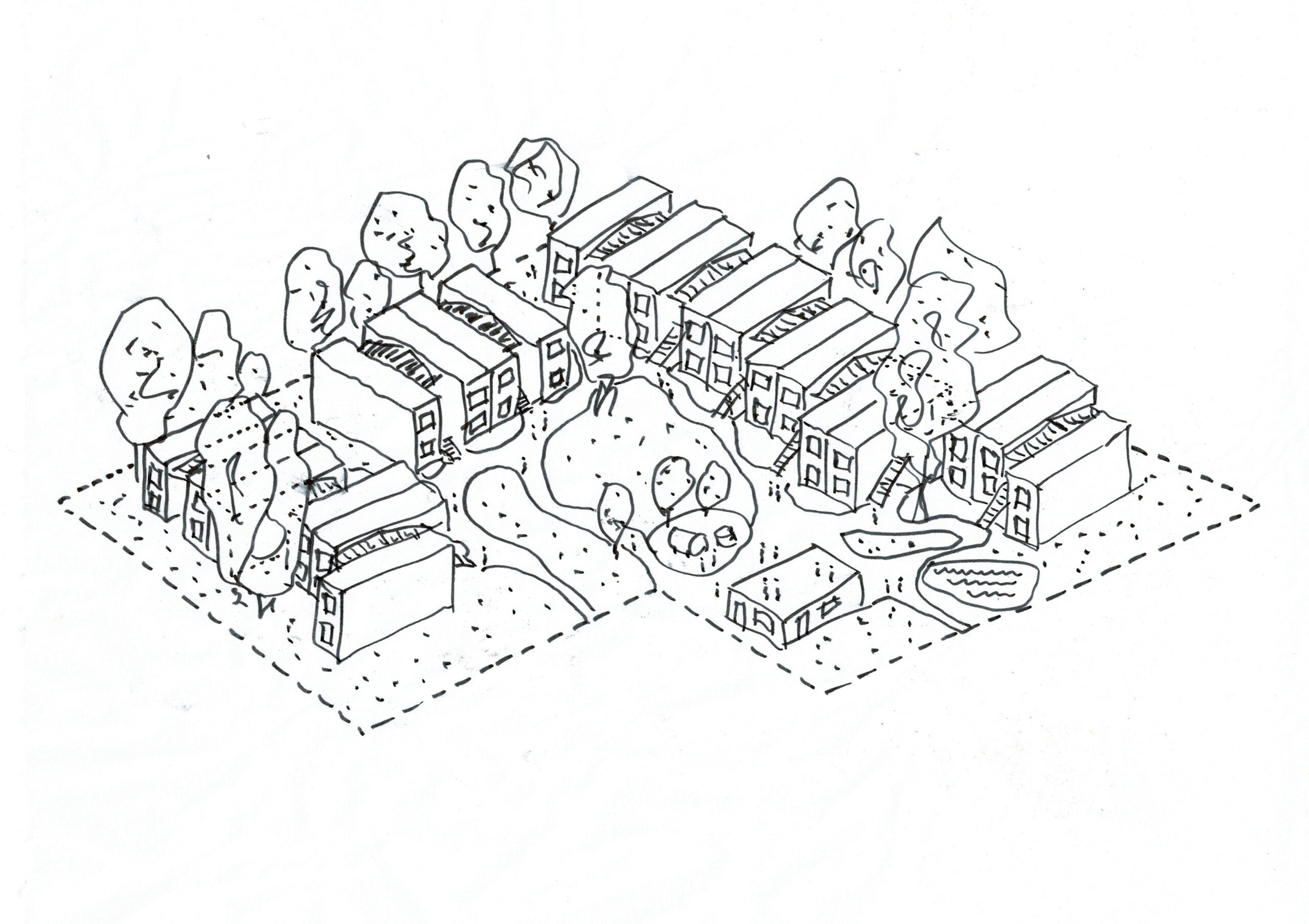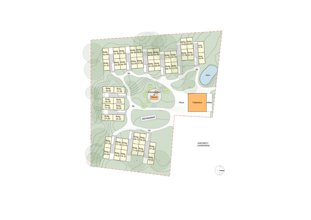 Der er plads mellem boligerne, så man kan hænge ud, slikke solskin eller grille med vennerne. Du kan også nyde saunagus og dyppe dig i koldtvandskarret. Boligerne er bygget i bæredygtige træsorter. Boligerne er placeret således på grunden, så vi har bevaret mange af de gamle træer. Vi lader det meste af grunden stå med vild biodiversitet med plads til sommerfugle og insekter. Men har du grønne fingre er du velkommen til at anlægge et lille urtebed og dermed blive din egen gartner. Hvorfor ikke dyrke dine egne salater, bønner, agurker og tomater?